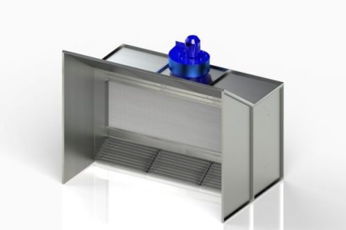 Krāsošanas kamera krāsošanas, lakošanas un apdares darbu veikšanai ražošanas vidē. Nodrošina efektīvu krāsas daļiņu un gaisa attīrīšanu.