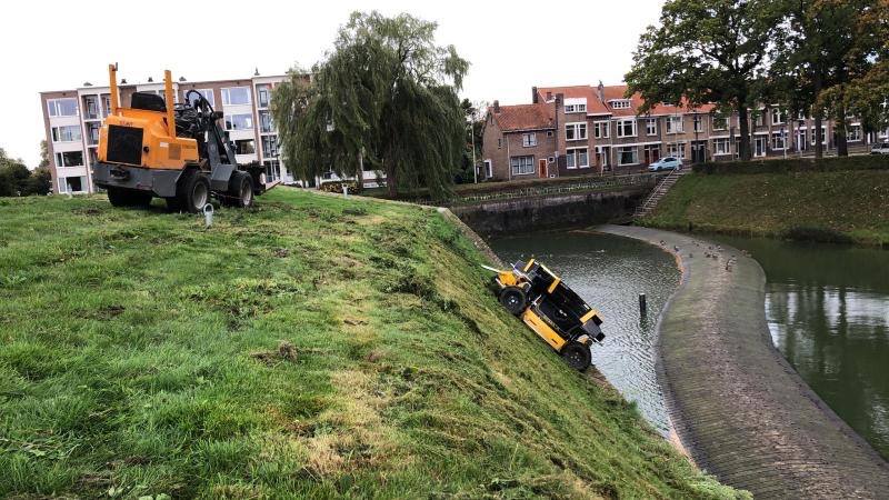 Šis profesionālais tālvadības zāles pļāvējs ir uzticams risinājums industriālai teritoriju kopšanai.