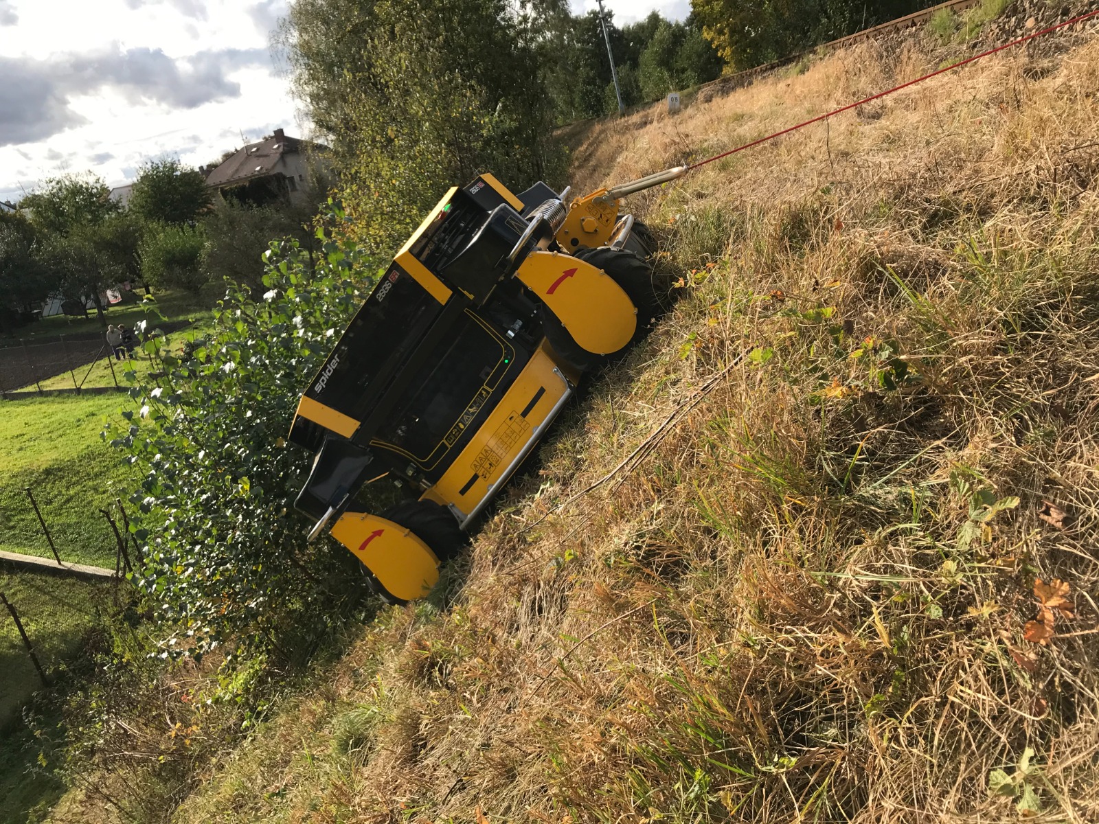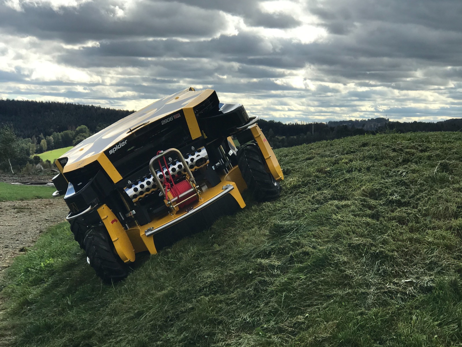 SPIDER 2SGS EFI ir tālvadības zāles pļāvējs nogāzēm un saules paneļu teritorijām ar EFI dzinēju un 4WD piedziņu efektīvam darbam.